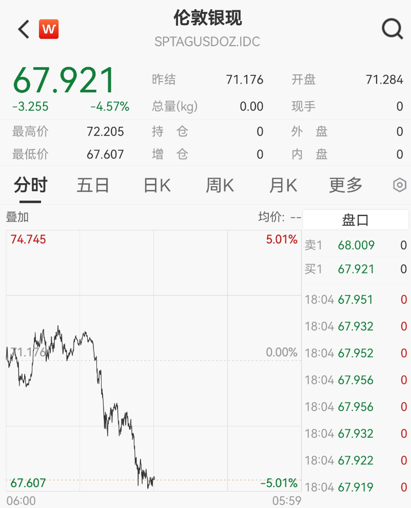 现货白银大幅下挫,盘中一度跌超5%。